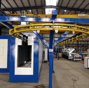 A Conveyorised Powder Coating Booth is a key component in an automated finishing line. It uses a conveyor system to continuously move parts through the booth.